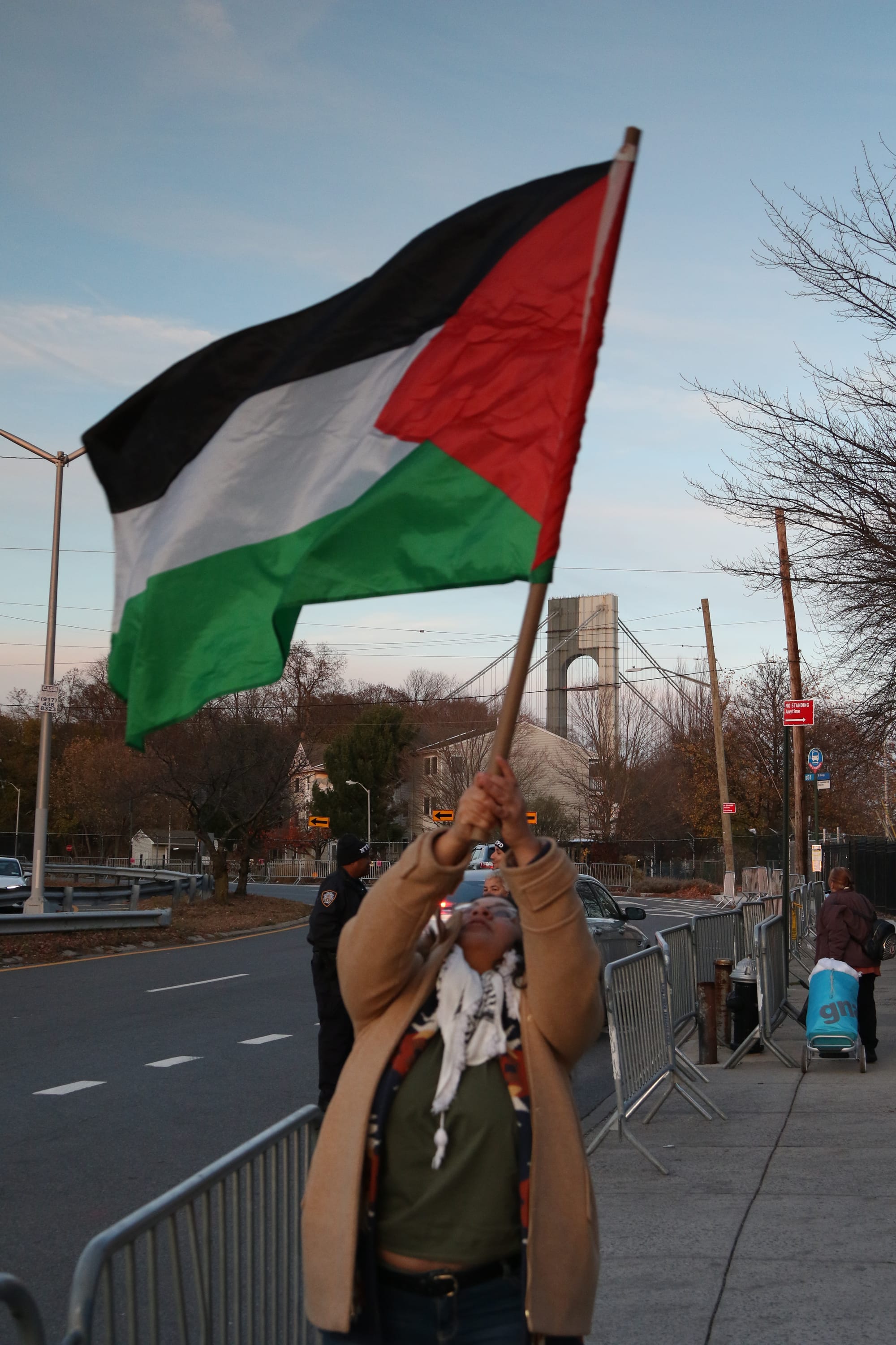 Staten Islanders organizing with Staten Island 4 Palestine (SI4P) and The Party for Socialism and Liberation (PSL) worked together to coordinate an emergency rally despite the busy Monday workday, short notice, last hour location/time changes, road closures, and attempted interference by the NYPD. Over 20 Staten Island residents stood together in solidarity outside Seaside Plaza holding banners, waving flags, and chanting to protest the President’s passing motorcade. “From Palestine to Turtle Island, occupation is a crime and we have a responsibility to show up everywhere that they go,” said Salma.